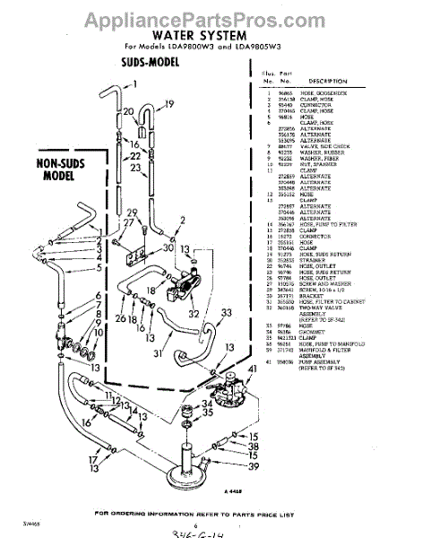 Parts for Whirlpool LDA9800W3: 06 - Water System Parts