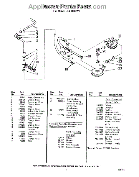 Parts for Whirlpool LHA6680W1: 07 - Water System Parts