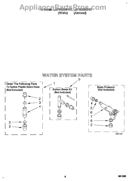Parts for Whirlpool LSP9355BW0: 05 - Water System Parts