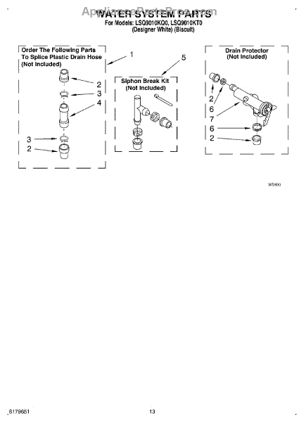 Parts for Whirlpool LSQ9010KT0: 09 - Water System Parts