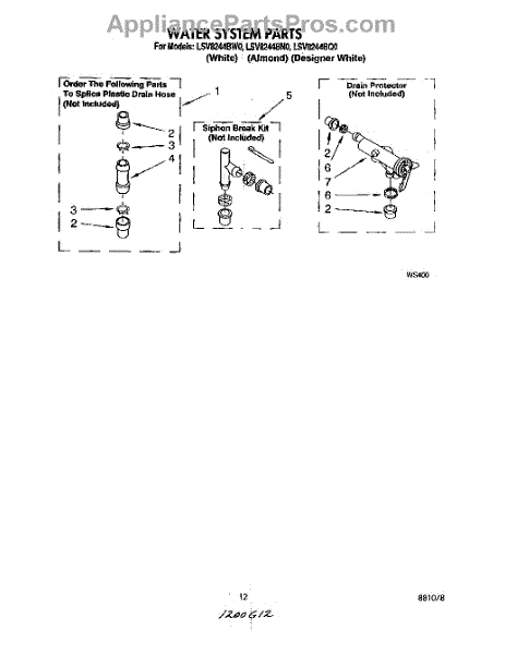 Parts for Whirlpool LSV8244BQ0: 10 - Water System Parts