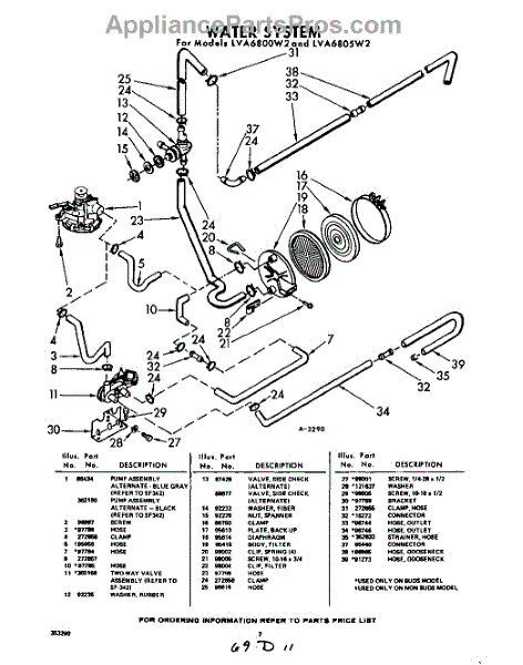 Parts for Whirlpool LVA6805W2: 02 - Water System Parts