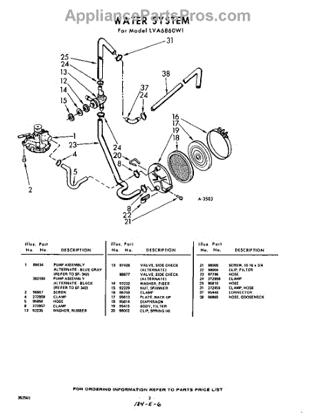 Parts for Whirlpool LVA6860W1: 02 - Water System Parts