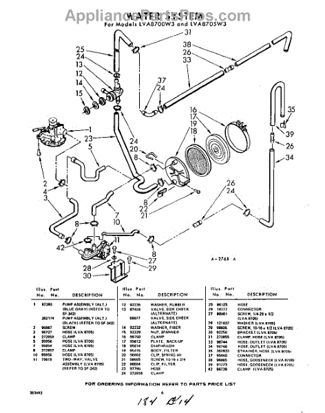 Parts for Whirlpool LVA8700W3: 06 - Water System Parts