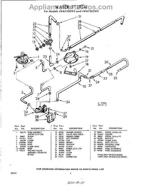 Parts for Whirlpool LWA7505W3: 06 - Water System Parts
