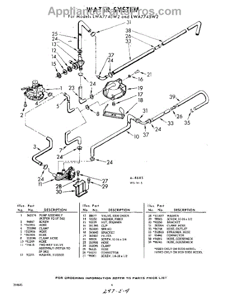 Parts for Whirlpool LWA7740W2: 04 - Water System Parts