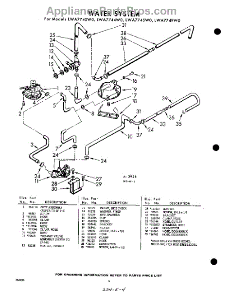 Parts for Whirlpool LWA7749W0: 04 - Water System Parts