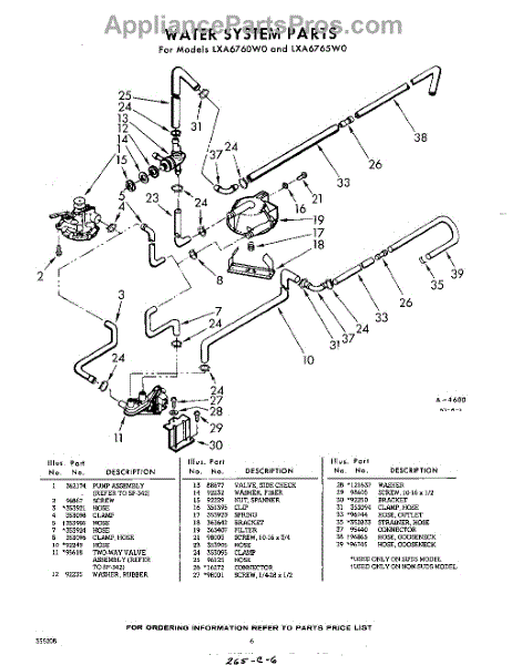 Parts for Whirlpool LXA6760W0: 06 - Water System Parts