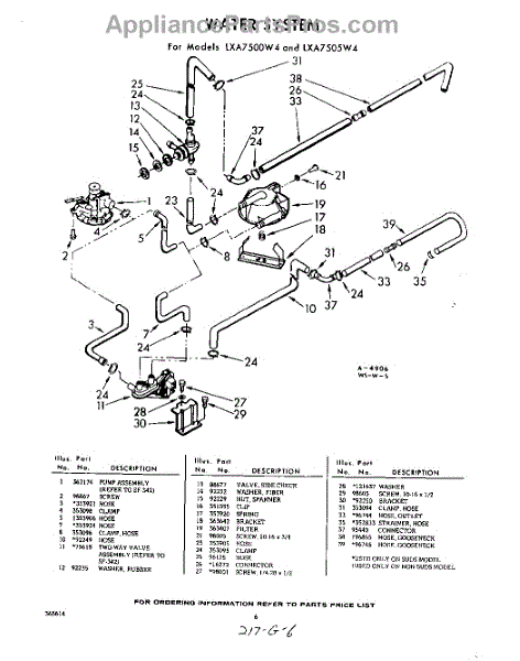 Parts for Whirlpool LXA7505W4: 06 - Water System Parts