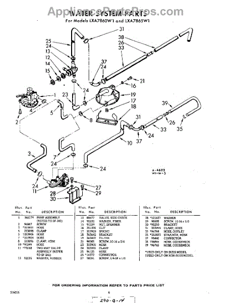 Parts for Whirlpool LXA7865W1: 06 - Water System Parts