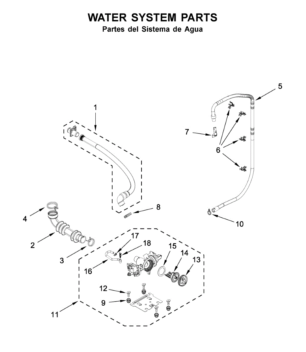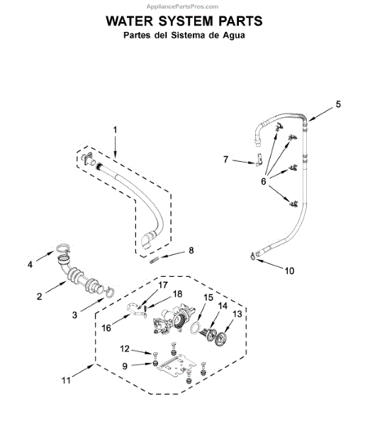 The Tub to Pump Hose is an OEM part for Whirlpool washing machines. This hose connects the washer tub to the pump, allowing water to flow between the two components.