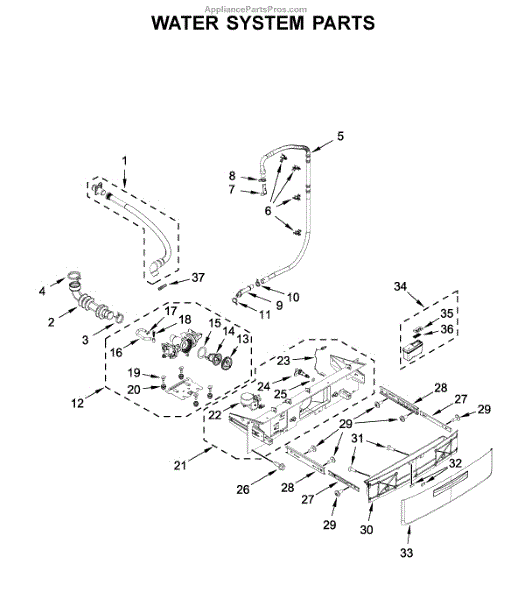 The Drain Hose is an OEM part for Whirlpool front-loading washers. This hose is responsible for transporting water from the washer tub out to the household plumbing drain.