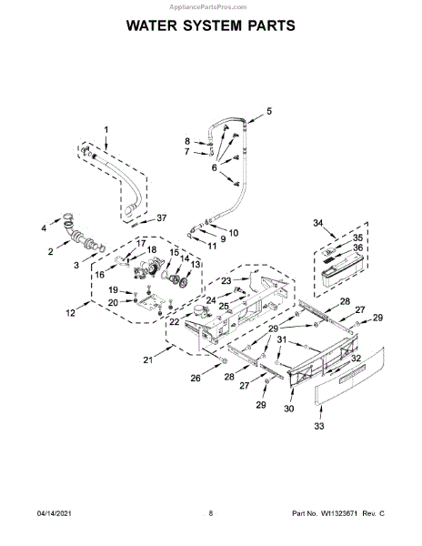 The Dispenser Metering Pump is an OEM part for Whirlpool washing machines. It dispenses laundry detergent at timed intervals during wash cycles.