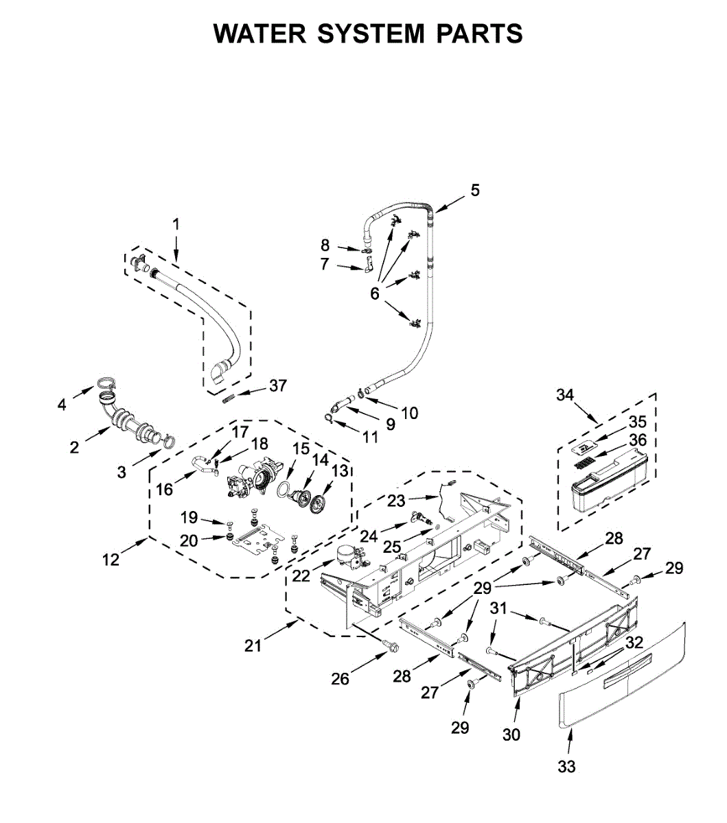 Parts for Whirlpool WFW6620HW1: Water System Parts