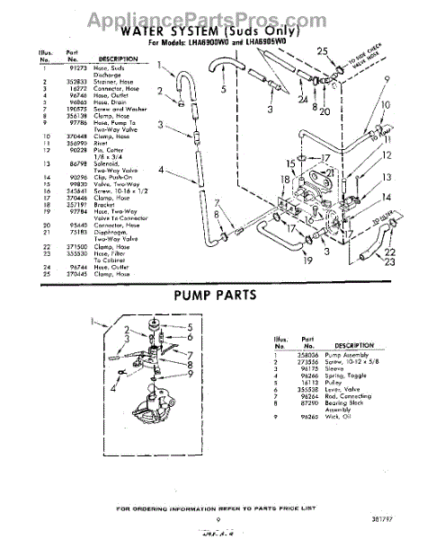 Parts for Whirlpool LHA6900W0: 09 - Water System , Pump Parts