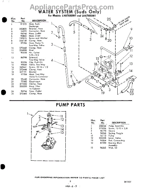Parts for Whirlpool LHA7685W1: 09 - Water System , Pump Parts