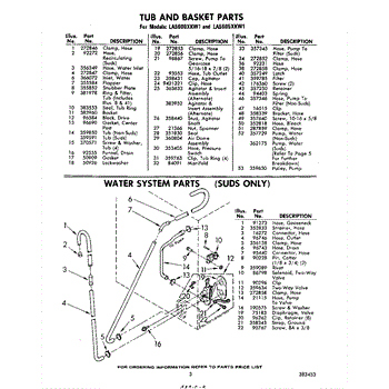 Parts for Whirlpool LA5605XKW1: 03 - Water System (Suds Only) Parts