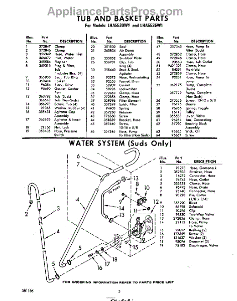 Parts for Whirlpool LHA5535W1: 03 - Water System (Suds Only) Parts
