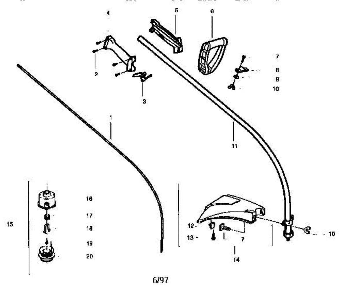 57-inch flexible drive shaft for brush cutters and line trimmers. Replaces worn, damaged, or broken flex shafts that transfer power from engine to cutting head.