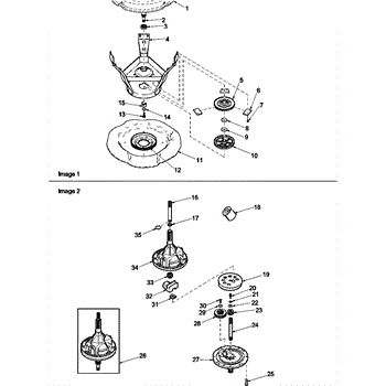 Parts for Amana LWA50AW: Weldment And Bearing Assy, Brake And Pul Parts