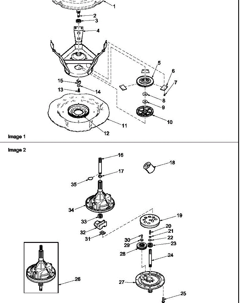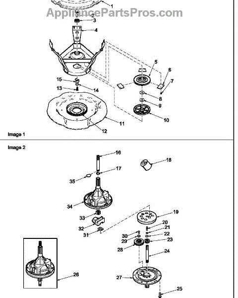 Parts for Speed Queen LWS55AW-PLWS55AW: Weldment & Bearing Assy,Brake & Pulley,And Trans. Assy Parts