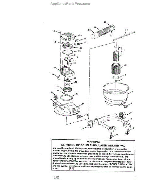 Parts for Craftsman 113170250: 16 Gallon Wet / Dry Parts
