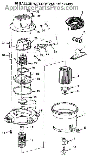 Parts for Craftsman 113177490: 16 Gallon Wet / Dry Vac 113.177490 Parts