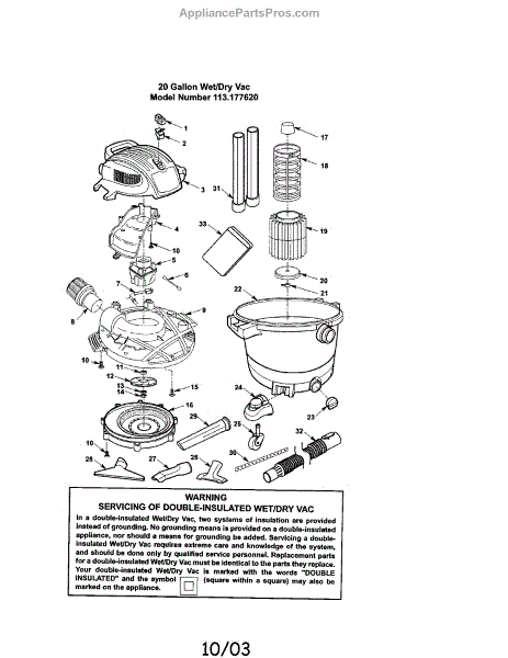 Parts for Craftsman 113177620: 20 Gallon Wet / Dry Vac Parts
