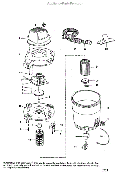 Parts for Craftsman 113179141: 12 Gallon Wet / Dry Vac Parts