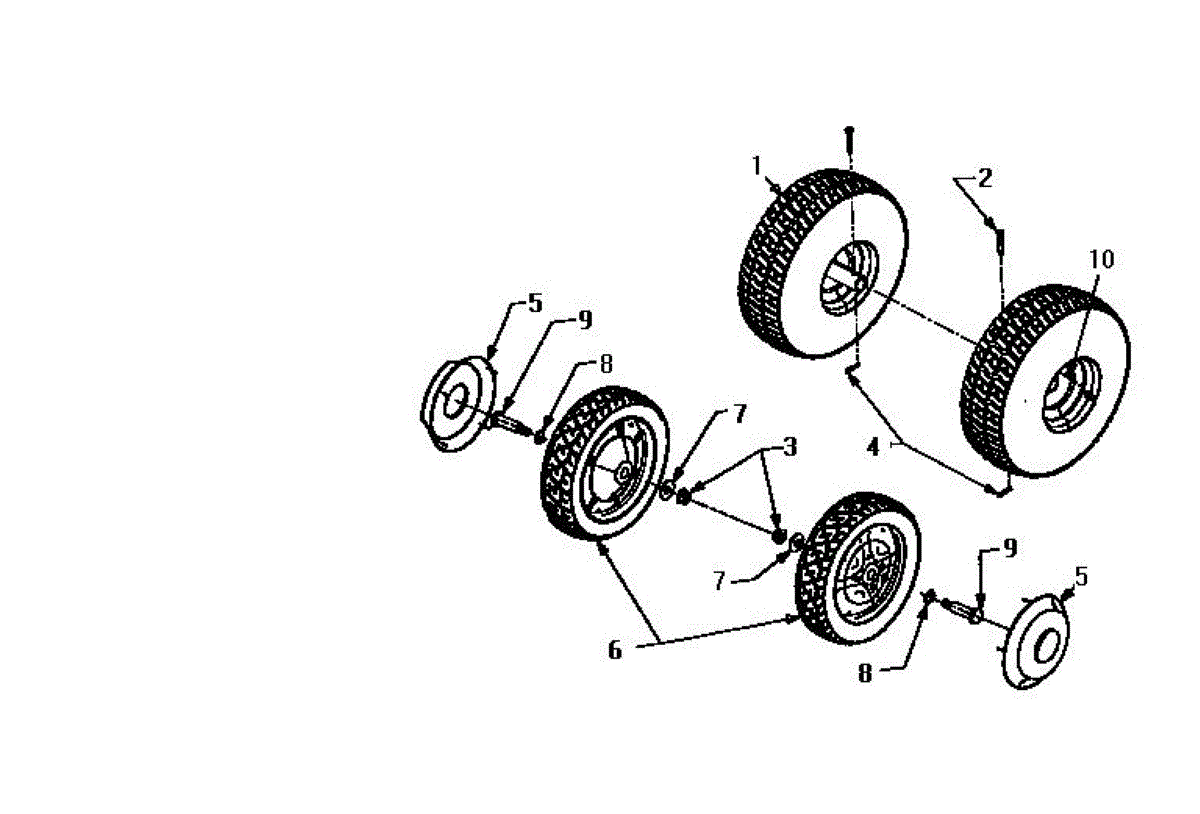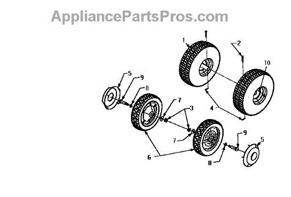 This is the front wheel assembly that is used by a large number of manufactures as the standard wheel for push mowers. This wheel is a tough, black rubber wheel fitted onto a sturdy white chassis. Since it is not a pneumatic wheel, there is no concern that it will roll over hidden debris and be damaged. Push wheels such as these often last the lifetime of a Lawn Mower. However, there are occasions when the housing of the mower is dropped and the wheel becomes warped or broken. It's also the case that, with constant use, the wheels can lose tread, making them harder to maneuver in tough mowing conditions. It has also been reported that the tires will wear and become smaller in circumference over time, meaning it will require more gasoline to mow the same amount of yard. The front wheels are easily replaced. After removing the plug cap and stabilizing the mower, simply use a socket wrench to remove the center bolt from the wheel. It's a good idea to use a dry lubricant like graphite on the axle before replacing it. This OEM guaranteed replacement part is compatible with Ryobi, Yard Machines, Troy-Bilt, Cub Cadet, Husky, Yard-Man, and MTD push mowers.