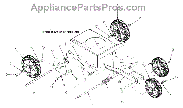 This is the front wheel assembly that is used by a large number of manufactures as the standard wheel for push mowers. This wheel is a tough, black rubber wheel fitted onto a sturdy white chassis. Since it is not a pneumatic wheel, there is no concern that it will roll over hidden debris and be damaged. Push wheels such as these often last the lifetime of a Lawn Mower. However, there are occasions when the housing of the mower is dropped and the wheel becomes warped or broken. It's also the case that, with constant use, the wheels can lose tread, making them harder to maneuver in tough mowing conditions. It has also been reported that the tires will wear and become smaller in circumference over time, meaning it will require more gasoline to mow the same amount of yard. The front wheels are easily replaced. After removing the plug cap and stabilizing the mower, simply use a socket wrench to remove the center bolt from the wheel. It's a good idea to use a dry lubricant like graphite on the axle before replacing it. This OEM guaranteed replacement part is compatible with Ryobi, Yard Machines, Troy-Bilt, Cub Cadet, Husky, Yard-Man, and MTD push mowers.