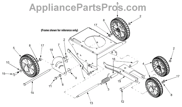 This is the front wheel assembly that is used by a large number of manufactures as the standard wheel for push mowers. This wheel is a tough, black rubber wheel fitted onto a sturdy white chassis. Since it is not a pneumatic wheel, there is no concern that it will roll over hidden debris and be damaged. Push wheels such as these often last the lifetime of a Lawn Mower. However, there are occasions when the housing of the mower is dropped and the wheel becomes warped or broken. It's also the case that, with constant use, the wheels can lose tread, making them harder to maneuver in tough mowing conditions. It has also been reported that the tires will wear and become smaller in circumference over time, meaning it will require more gasoline to mow the same amount of yard. The front wheels are easily replaced. After removing the plug cap and stabilizing the mower, simply use a socket wrench to remove the center bolt from the wheel. It's a good idea to use a dry lubricant like graphite on the axle before replacing it. This OEM guaranteed replacement part is compatible with Ryobi, Yard Machines, Troy-Bilt, Cub Cadet, Husky, Yard-Man, and MTD push mowers.