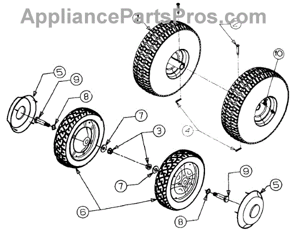 This is the front wheel assembly that is used by a large number of manufactures as the standard wheel for push mowers. This wheel is a tough, black rubber wheel fitted onto a sturdy white chassis. Since it is not a pneumatic wheel, there is no concern that it will roll over hidden debris and be damaged. Push wheels such as these often last the lifetime of a Lawn Mower. However, there are occasions when the housing of the mower is dropped and the wheel becomes warped or broken. It's also the case that, with constant use, the wheels can lose tread, making them harder to maneuver in tough mowing conditions. It has also been reported that the tires will wear and become smaller in circumference over time, meaning it will require more gasoline to mow the same amount of yard. The front wheels are easily replaced. After removing the plug cap and stabilizing the mower, simply use a socket wrench to remove the center bolt from the wheel. It's a good idea to use a dry lubricant like graphite on the axle before replacing it. This OEM guaranteed replacement part is compatible with Ryobi, Yard Machines, Troy-Bilt, Cub Cadet, Husky, Yard-Man, and MTD push mowers.