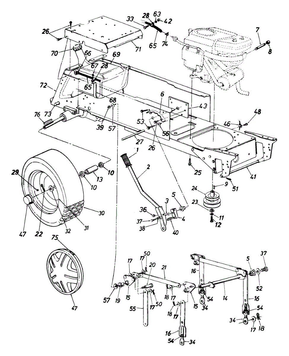 Parts for Mtd 144-829H000 / 1994: Wheel, Rear / Lift & Hanger Assembly / Fuel Tank / Hitch Plate Parts