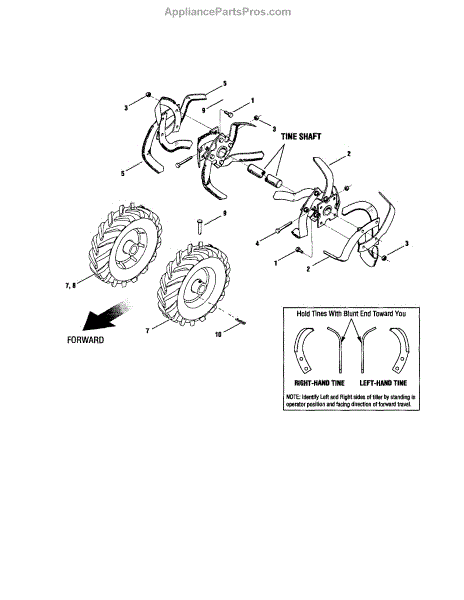 This left-hand bolo tine is a replacement part used for a tiller. This part is constructed of black metal and requires a wrench set for installation. This tine easy to install. The left-hand bolo tine attaches to the left tine holder and is used to dig up dirt in the area being tilled. This is a genuine OEM part sourced directly from the manufacturer and is sold individually.The left-hand bolo tine should be replaced if it is damaged or no longer working. If the tines become so worn that they are pointed, the tiller will not perform acceptably. The tiller will not dig as deeply nor will chop garden residues and cover crops. The tines are typically to be replaced as a set rather than individually.To replace the tines, begin by removing the sheer bolt with a wrench that connects the tine assembly to the tine shaft. Next by using either a wrench or small impact driver, remove all nuts and bolts disconnecting the tines from the tine holder. Replace the left-hand and right-hand tines, tightening with either a wrench or small impact driver, and reattach the tine holder assembly to the tiller securing it with the sheer bolt. The tines should slant into the inside of the tine holder. The tiller is now ready for use. This part is manufactured by Troy-Bilt and MTD.