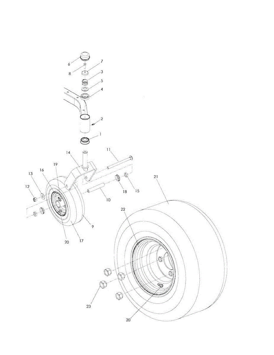 Complete tire and wheel assembly for riding mowers. Includes rubber tire and metal rim. Replace when tire is punctured, cracked, or rim is bent or damaged.