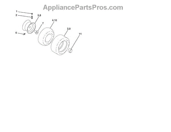 Rear tire for riding mowers and lawn tractors. Replace when tread is worn, tire loses air frequently, or vibration occurs during operation. Verify fit with your model number before ordering.