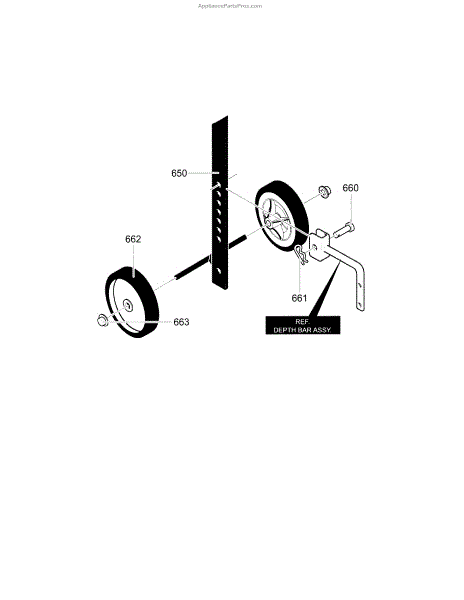 Parts for Craftsman 536292523: Wheels And Depth Bar Assembly Parts