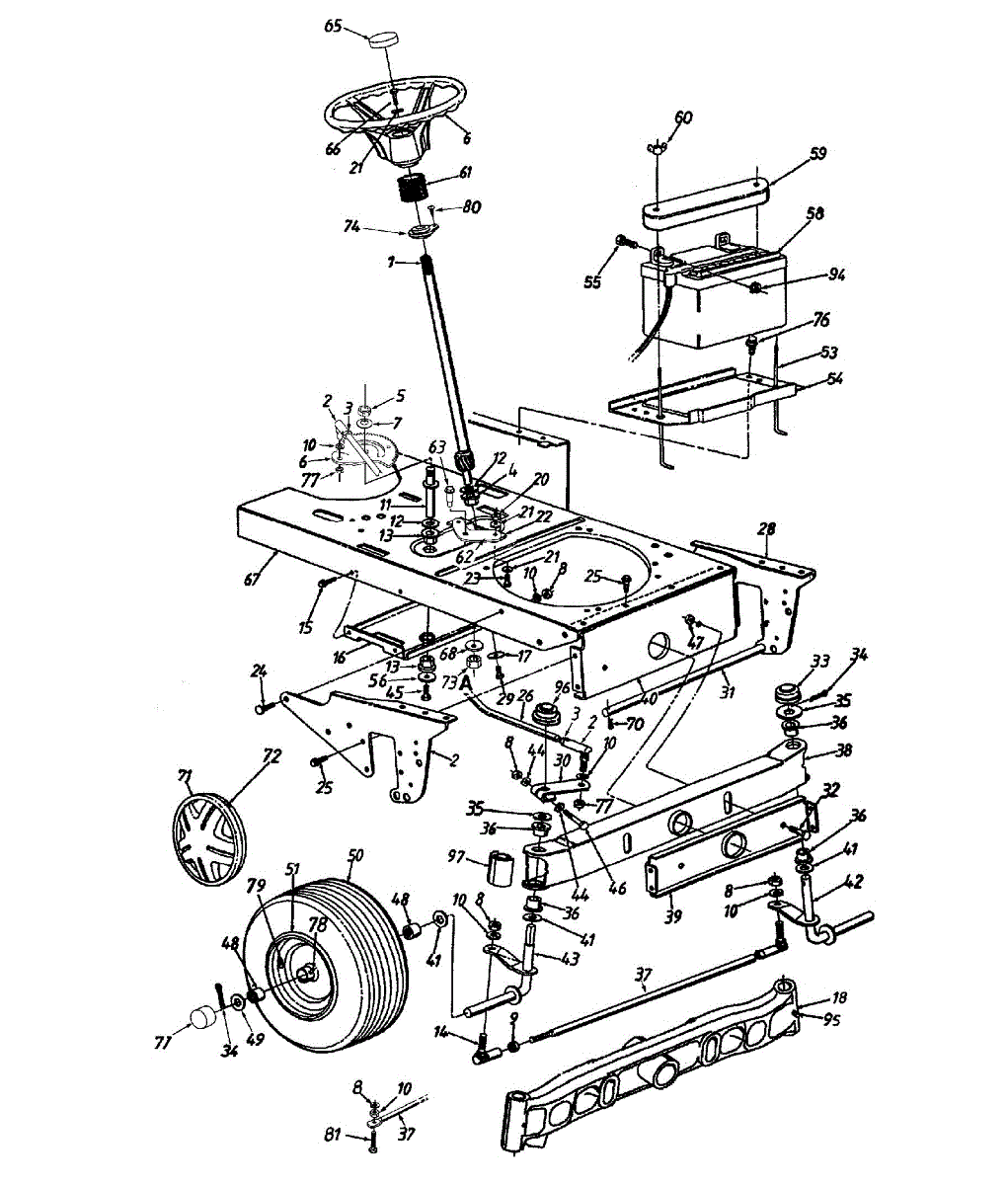 Flat washer for lawn mowers and tractors. Spreads load from bolts and screws to prevent damage. Replace if worn, cracked, or missing hardware.