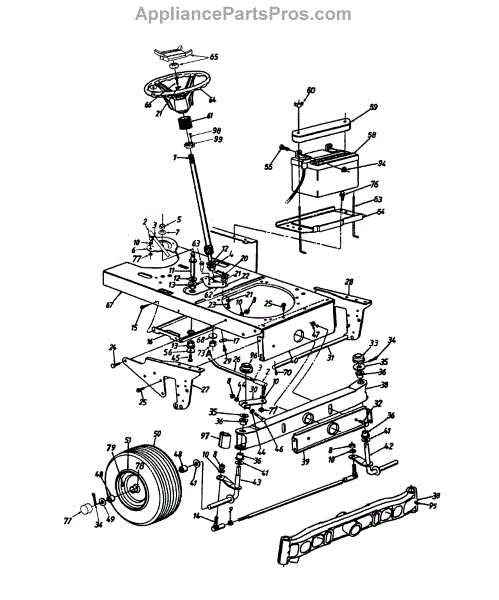 Parts for Yard-Man 14AY834P401 / 1997: Wheels, Front / Axle / Steering Assembly Parts