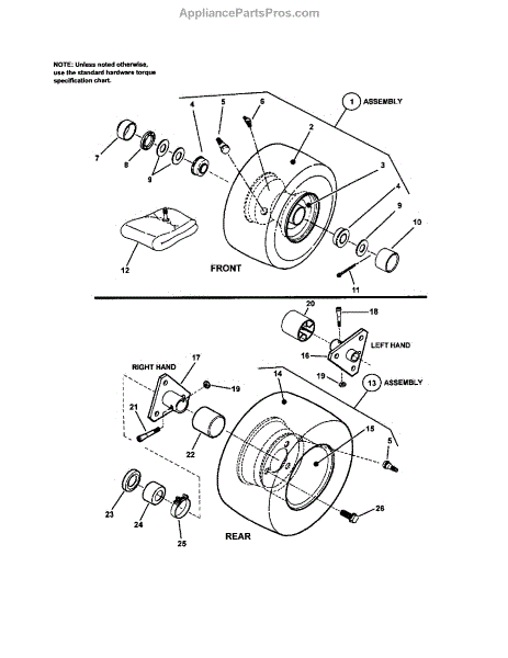 Parts for Craftsman 107280340: Wheels - Front & Rear Parts