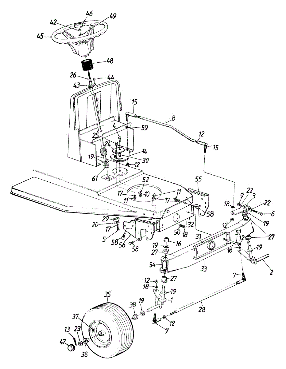 Tie rod connects steering components on lawn tractors and garden tractors. Replace if bent, cracked, or worn to restore proper steering linkage alignment.