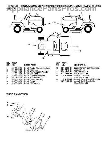 This is a rear tire for a lawn mower or lawn tractor. Tires are critical to the smooth, comfortable operation of a lawn mower, and their lifespan depends on how they are used. Lawn mower tires that are used more frequently, or on rougher terrain, will typically have a shorter lifespan. Lawn mower tires may lose traction over time with repeated use. They may also weaken and be unable to hold air pressure for long periods of time. Occasionally, a lawn mower tire may become punctured or damaged. Lawn mower tires may also degrade through exposure to extreme weather conditions, such as heat, rain, wind, and cold. A visual inspection can help determine whether it is time to replace the tire. Depending on the condition of the tires, it might be necessary to replace both rear tires at once. This can ensure a smooth, even mowing experience, and prevent additional damage to the mower. This lawn mower tire is an OEM part sourced directly from the manufacturer, and it is sold individually. It is compatible with lawn mowers and lawn tractors made by Jonsered, Poulan, Ariens, Husqvarna, Craftsman, Rally, Yard Pro, Murray, Ryobi, Weed Eater, Western Auto, Companion, and Southern States.