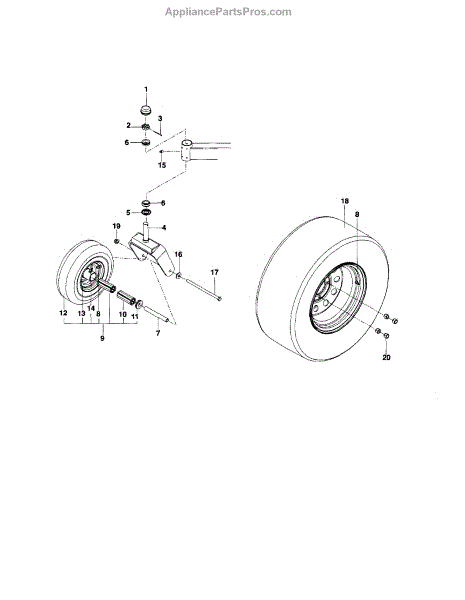 This is a rear tire and wheel assembly that is used on many zero-turn riding lawnmowers. This part is located on the bottom of the lawnmower and keeps the base of the equipment from touching the lawn. The purpose of the rear tire and wheel assembly is to keep the lawnmower off the ground. It also acts as a means for the lawnmower to move across the yard so that it can cut grass. Damage can be inflicted on the assembly, which will necessitate a replacement.A pair of work gloves and a basic set of tools will be useful for replacing the rear tire and wheel assembly on a lawnmower. Drive the equipment onto a level surface and turn it off. Next, the spark plug wire should be disconnected to prevent the engine from turning on. Use the tools to remove the damaged wheel and replace the part with a new component. Replace the spark plug wire before use.The rear tire and wheel assembly is designed to be compatible with several riding lawnmowers manufactured by Husqvarna, Poulan, and Weed Eater. It is sold as an individual part. This is an authentic OEM replacement component that is directly sourced from the manufacturer.