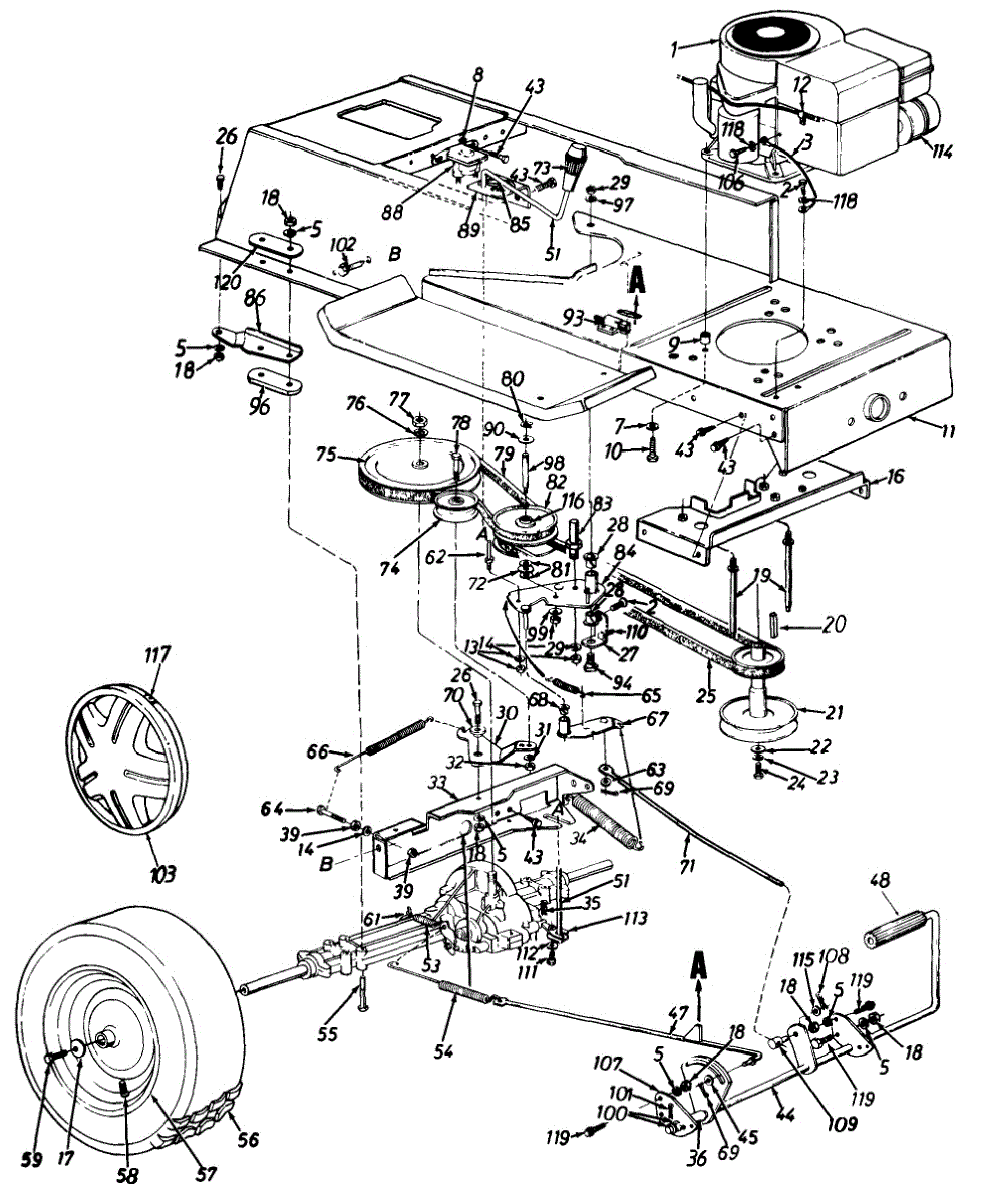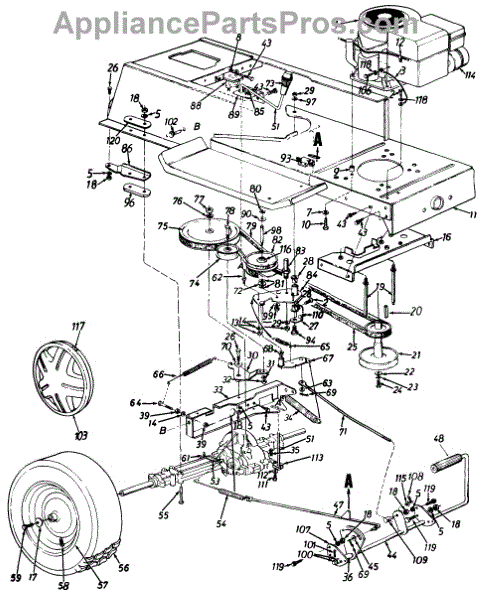 Parts for Turf Power 134K675G095 / 1994: Wheels, Rear / Drive / Frame, Lower / Pedal Assembly Parts