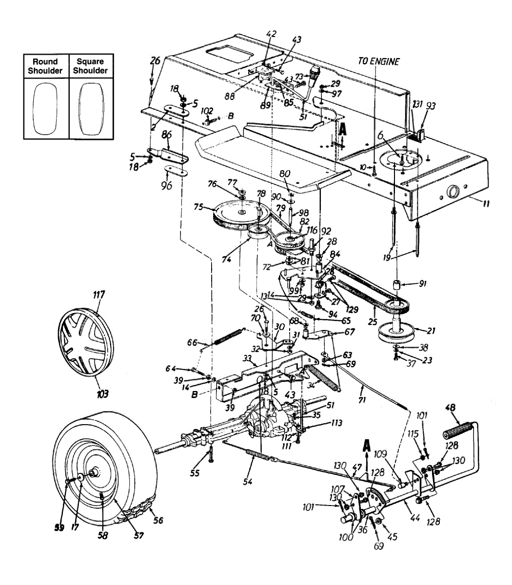 Bell washer adds spacing on shafts in lawn tractors, tillers, mowers, and chipper shredders. Replace if washer is missing, worn, or damaged during maintenance.