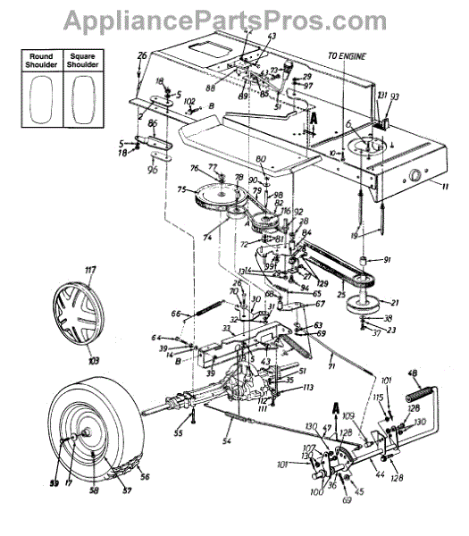 Parts for Huskee / Husky 13A4660F131 / 1998: Wheels, Rear / Pedal Assembly / Drive / Lower Frame Parts