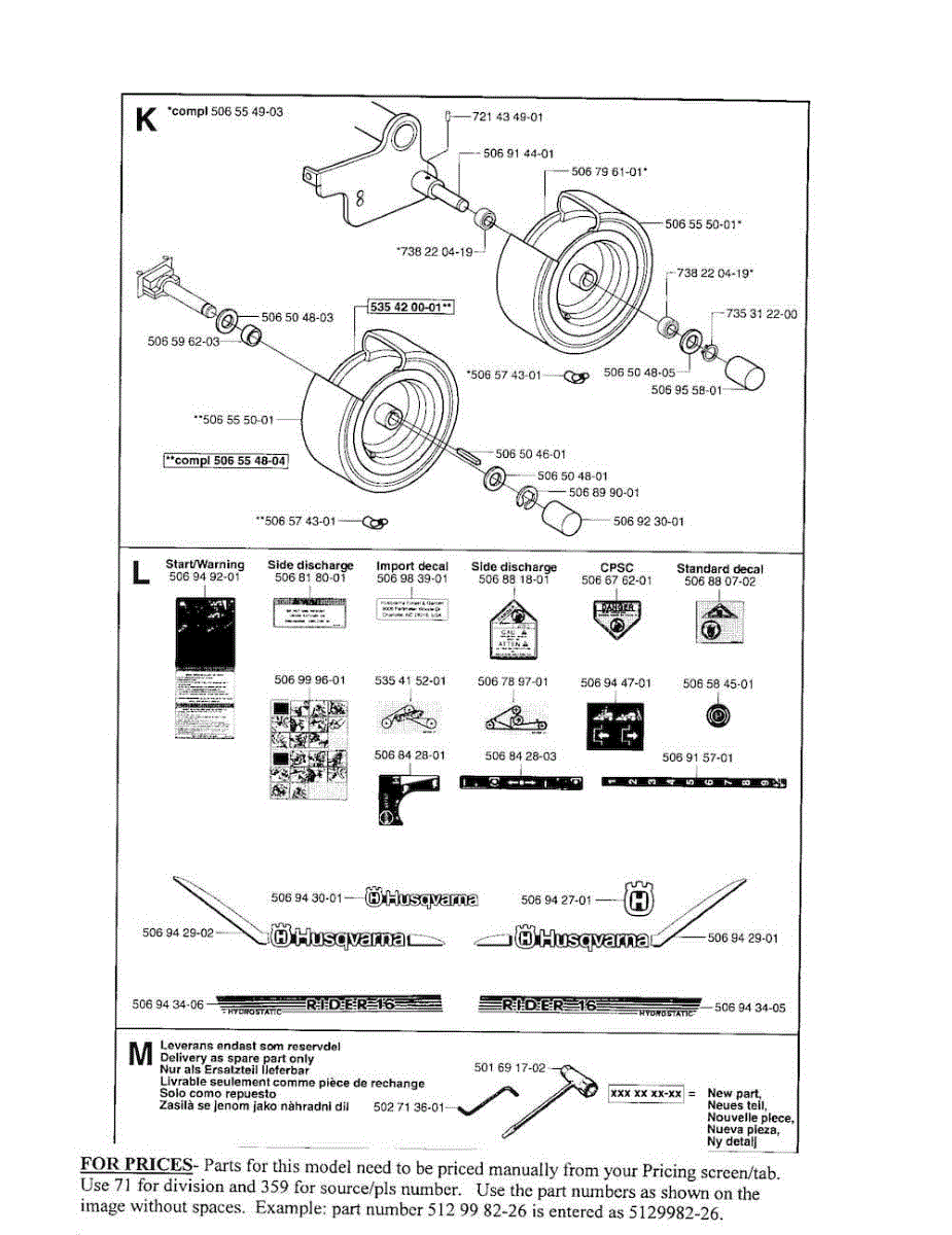Parts for Husqvarna RIDER 16H: Wheels, Tires, Decals Parts