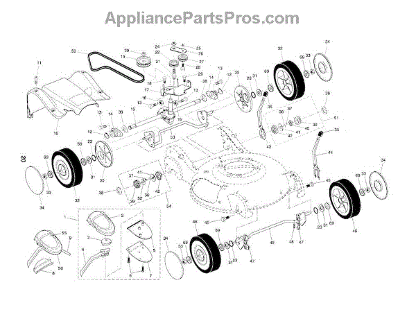 Replace a worn drive pulley causing belt slippage or loss of self-propel function on your walk-behind mower. Moderate DIY repair in about 30 minutes.