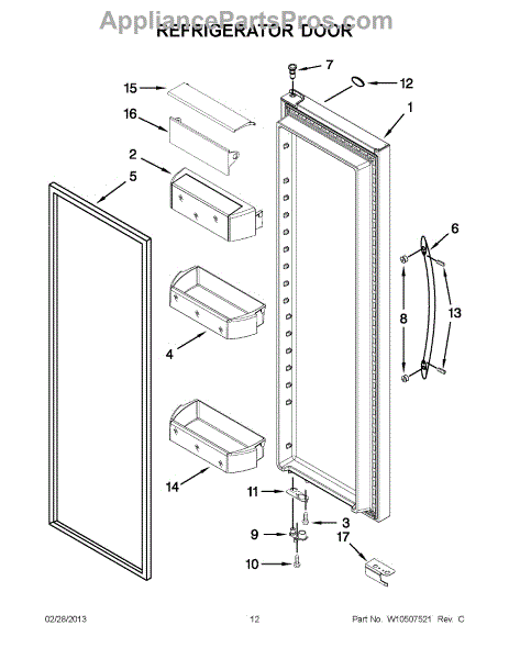 Chester R Highland Mills , NY January 17, 2021 Appliance: Model WRS973CIHV00 WHIRLPOOL REFRIGERATOR/FREEZER New Whirlpool side by side refrigerator/freezer did not have enough storage bins included with the product when purchased. Since there was sufficient space on the refrigerator door to add two more bins, I procured two more from appliance parts pros and simply hung them onto the door slots. The new freezer shelf again was simply installed onto the slots provided. Read More... Do-It-Yourself Rating: Repair Time Estimate: Less than 15 minutes